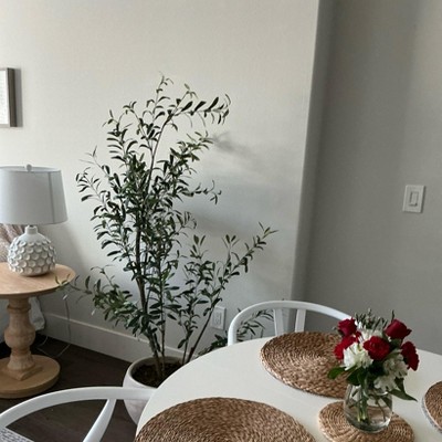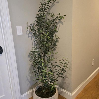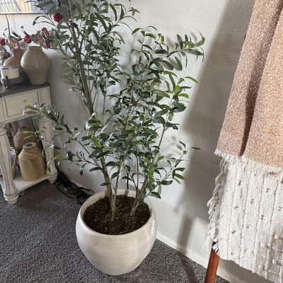 [This review was collected as part of a promotion.] I wish I could give it more stars! I am wholeheartedly and absolutely obsessed and totally in love with this tree. It’s even better in person. I’m very picky about fake plants because I hate when they look fake. This olive tree is standing at 61 inches looks absolutely beautiful and totally real. Great quality material was put into the making of this product and I think it’s an absolute steal for the value. I love the beautiful But simple pot and obsessed with the asymmetrical design. I would buy 20 more of these!