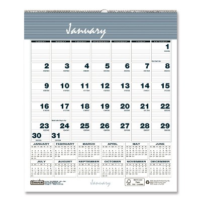 Easily keep track of your schedule with this convenient calendar, featuring a yellow-highlighted section for notes and to-dos. Ideal for small cubicles and wall spaces, it provides quick, at-a-glance data referencing. The reversible layout offers a write-on/wipe-off surface for use with wet-erase markers. Monday–Friday blocks are white, Saturday–Sunday blocks are light blue, and federal holidays appear in red. Printed in four colors on durable, high-quality paper and packaged flat.