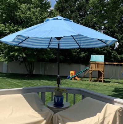 Athens Inside Out Striped 9Ft Crank Auto Tilt Umbrella - PAT8007 - Baby Blue/White - Safavieh