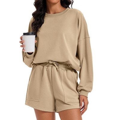 The matching set offers practicality for various aspects of life, ensuring you stay fashionable and comfortable. Ideal for lounging, casual activities, and more, it provides a flattering fit. The set includes an oversized sweatshirt with a crew neck and cap sleeves, combined with elastic waist shorts for a relaxed look. Crafted from a cozy material, the outfit is soft, lightweight, and incredibly comfortable, offering a delightful dressing experience. Mix and match this workout set to create versatile styles, expanding your summer wardrobe choices. Elevate the look with a baseball cap and sports shoes, or keep it casual by pairing it with sandals. Perfect for wearing at home, streetwear, workouts, going out, school, yoga, travel, dates, jogging, shopping, cycling, resorts, running, and travel.