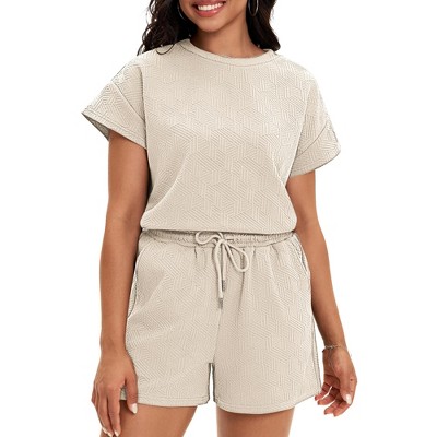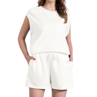 The matching set offers practicality for various aspects of life, ensuring you stay fashionable and comfortable. Ideal for lounging, casual activities, and more, it provides a flattering fit. The set includes an oversized sweatshirt with a crew neck and cap sleeves, combined with elastic waist shorts for a relaxed look. Crafted from a cozy material, the outfit is soft, lightweight, and incredibly comfortable, offering a delightful dressing experience. Mix and match this workout set to create versatile styles, expanding your summer wardrobe choices. Elevate the look with a baseball cap and sports shoes, or keep it casual by pairing it with sandals. Perfect for wearing at home, streetwear, workouts, going out, school, yoga, travel, dates, jogging, shopping, cycling, resorts, running, and travel.