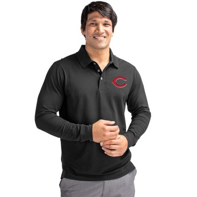 Athletics Cutter & Buck Advantage Eco Tri-Blend Pique Mens Big and Tall Long Sleeve Polo - Black - 1X Big