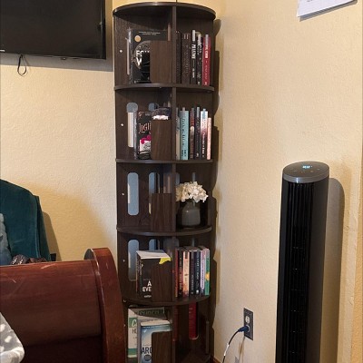 ATJafurn 17.7'' 360° Rotating Bookshelf Tower Revolving Corner Bookcase, Mid-Century Modern Dark Walnut Spinning Bookshelves For Home Office Corner