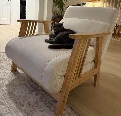 ATJafurn 34.6'' Modern Solid Wood Armchair Futon, Convertible Folding Accent Lounge Chair Recliner Sofa Bed Sleeper Chaise Daybed For Living Room