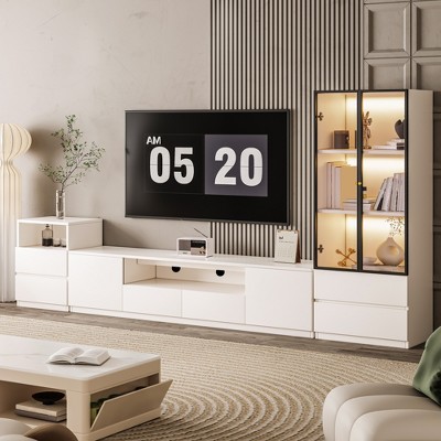ATJafurn White Modern Television Stand for 65/70/75/85 inch TV, Wooden Entertainment Center Media Console with Storage and Drawers for Living Room