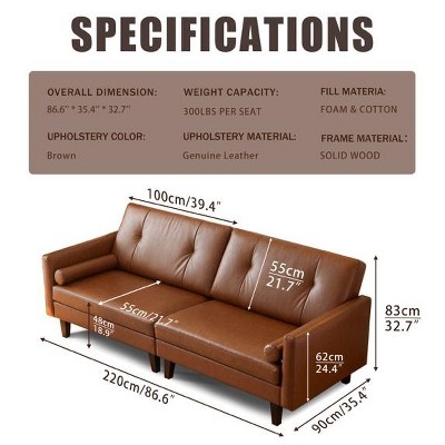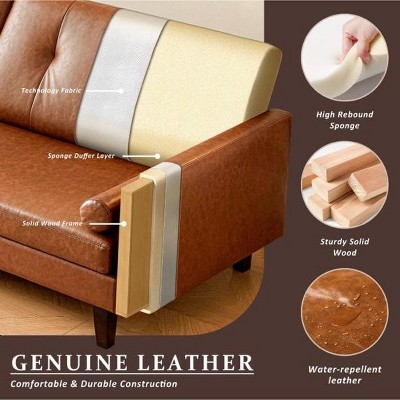 ATJafurn 86 inch Genuine Leather Sofa, Mid-Century Modern Upholstered Sectional Couch Retro Luxurious Loveseat for Living Room Bedroom Office