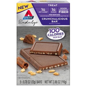 - SATISFY YOUR SWEET TOOTH. Atkins Endulge Crunchalicious Chocolate Bars. Crisp, mouth-watering bars with 1g of net carbs and 1g of sugar per serving*. This is Today’s Atkins™