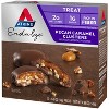 - PECAN CARAMEL CLUSTERS. Enjoy indulgent caramel and real roasted pecans wrapped in a rich chocolatey coating to satisfy your sweet tooth. The Atkins Endulge Treats delight your taste buds while keeping you true to your lifestyle.