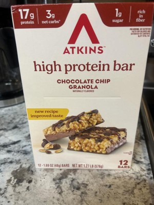 - PROTEIN-POWERED SATISFACTION. Atkins Chocolate Chip Granola Flavored High Protein Bars feature the chocolatey chip taste and granola texture that keeps you coming back for more.