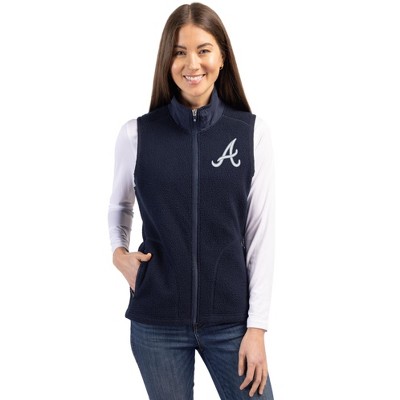 Atlanta Braves Cutter & Buck Mainsail Sweater-Knit Mens Full Zip Vest - Liberty Navy Heather - Medium