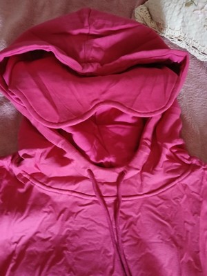 raspberry color is so full & vibrant. soft inside. super comfortable. True to size with extra pockets. didn't fade or shrink. very pleased wear it anywhere & does have eye mask attached for napping