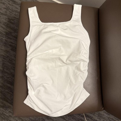 The Attraco Women's Maternity Tank Top is a sleeveless basic shirt crafted from seamless one-piece fabric for unparalleled comfort and flexibility, easily adapting from early to late pregnancy. It features built-in removable bra pads for extra support and coverage, plus a U-back design that flatters and eases shoulder pressure. Side ruching enhances coverage, ensures a better fit and leaves room for growth, while its solid basic color makes it a versatile wardrobe staple—suitable for casual outings, workouts and more.