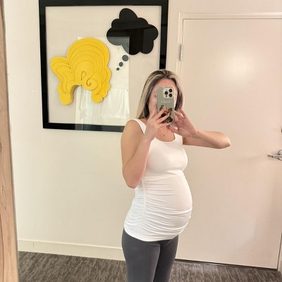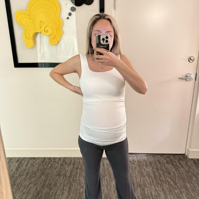 The fabric is soft and super stretchy. I want to highlight it's a bright white color — which I loved — and the quality is very good. The top is very comfortable and provides you with excellent support for the chest. It's truly a basic garment that you'll wear a lot during your pregnancy and its design goes with everything — from a casual outfit to a more formal one under a blazer. I'm very satisfied with my purchase.