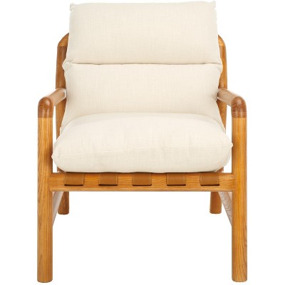 Cozy up your home with the modern charm and comfort of our Attwell accent chair. The refined silhouette and plush upholstery of the chair offer high style with a practical touch. It features a reclined back, a deep inclined seat, and padded arms for an instant lounge appeal. Its sculpted wooden frame showcases a rich natural finish. Upholstered in boucle in a cream hue, our accent chair lends cozy comfort and style to your living space, bedroom, or study.