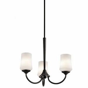 You'll love the transitional styling of this 3 light chandelier from the Aubrey(TM) Collection. The unique satin etched cased opal glass shape and Brushed Nickel tapered column design are the perfect blend of styles creating the perfect complement to your home. Sloped Ceiling Adaptable: Yes Chain Length: 36.00 Material: Steel, Finish Color: Olde Bronze, Width: 21.5", Height: 19.25", Chain Length: 36", Lamping Type: Incandescent, Number Of Bulbs: 3, Wattage: 100 Watts, Moisture Rating: Dry Rated