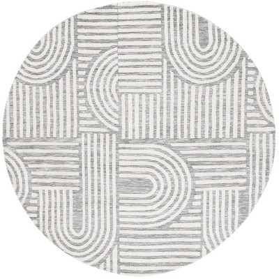 Introducing our exquisite 6' X 6' round area rug, a harmonious blend of light grey and ivory tones that will seamlessly integrate into any modern living space. Meticulously crafted in India using a power-loomed technique, this rug showcases remarkable craftsmanship and attention to detail.
