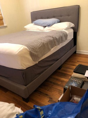 - Foam-padded, grid-tufted headboard