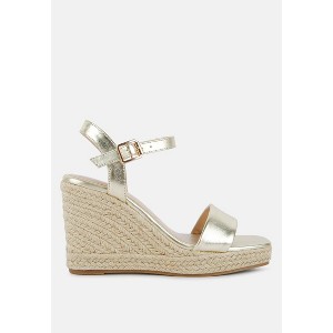 Espadille wedges with a trendy square cut open toe. The comfy wedge sandal has shiny metallic pin buckle fastening and is a basic style booster from London Rag. Has a soft insole which keeps it relaxed and wonderful. Type: Sandal Heel Type: Wedge Open Square Toe Upper Material: PU Lining: Synthetic Outsole: Rubber Espadrille Detail Wedge Pin Buckle Fastening SH3199