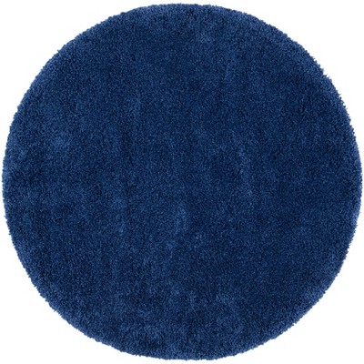 At 8'-6" in diameter and a cozy height of 1 1/8", the rug is a sumptuous addition to any room, providing a generous area for furniture and feet to enjoy. Designed in a classic Shag & Flokati style, this rug's rich navy hue exudes a timeless charm, while the subtle pattern, as seen in the image provided, adds a hint of textural intrigue to its plush pile.