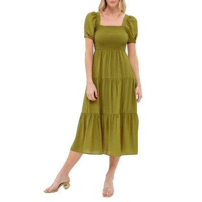 August Sky Women's Short Sleeve Smocked Midi Dress