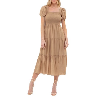 Product Name: August Sky Women's Stripe Round Neck Belted Shirt Dress, Large, BROWN
