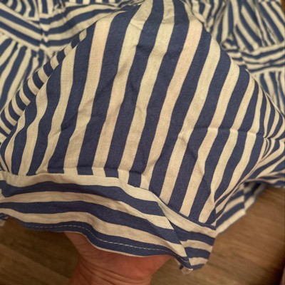 This is a pretty dress with a nice maxi length. I love the blue stripes but I do agree with others who say the top is completely see through. I wear a white camisole underneath and prefer to layer anyways but it would be a better product if the top was thicker. Very comfortable though.