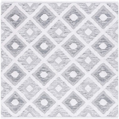 Introducing our sophisticated 6'-4" x 6'-4" square area rug, a perfect blend of style and sustainability. Crafted in Turkey with precision power-loomed techniques, this rug features a chic grey and ivory color palette that seamlessly integrates into any decor. The design showcases a harmonious pattern of geometric shapes and intricate borders, adding texture and interest to your floors. With a comfortable pile height of 5/8", it combines underfoot comfort with resilient design. Made of 92% recycled cotton and 8% polyester, this rug not only enhances your space but also supports environmentally conscious living. Proudly OEKO-TEX certified, it ensures safety and quality without compromising on style. Make a statement in your home with this eco-friendly and stylish centerpiece.