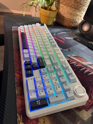 [This review was collected as part of a promotion.] I got the Aula F99 PRO Mechanical Gaming Keyboard in white and blue as part of my back to school setup, and it’s been a delight. The tri‑mode connectivity of bluetooth, 2.4 GHz wireless, and USB‑C is super flexible, though my USB‑C head arrived crushed during shipping, so I’ve only used bluetooth and wireless so far, which both work great. For charging, I used my own USB-C chargers. Typing is a whole vibe, the sound is creamy, smooth, and satisfying. That gasket mounted design plus five layers of dampening really gives it that premium “thocky” feel without being too loud. It picks up every keystroke fast and accurately, no lag, no missed letters. Battery life is great. With the RGB on, I’m getting about a week per charge, and way more with backlight off. 8000 mAh battery is no joke. It's ideal for long study sessions without worrying about charging. The RGB backlit is perfect for my dark room habits. South facing LEDs give a neat glow, bright enough to work in the dark without blasting my eyes. The white & blue color scheme matches my minimalist study space. One of my favorite features is the rotary knob. It's great for adjusting volume and lighting quickly. All in all, for those who love mechanical keyboards, this is a solid choice. My USB‑C may be busted, but bluetooth and wireless still do the job. I love its creamy sound, sleek look, and how it feels like part of my study vibe.