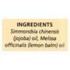 simmondsia chinensis ( jojoba) oil, melissa officinalis (lemon balm) oil.' '