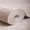 A full roll of this product is 20.5 inches wide and 396 inches long. A full roll can cover up to 56 square feet depending on the design match and pattern repeat. A sample of this product is 8 inches by 11 inches. A delicate sprig motif stretches over a textured neutral background for the ultimate in easy living wallpaper. Raised texture gives the paper a pleasantly tactile feel. Warm taupe background and delicate white sprigs create a simple all-over pattern, perfect for adding interest to a neutral space. Offers a smooth, untextured finish. Straight match with a 25.2 inch pattern repeat.