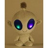 Galactic Cuties are out of this World! Watch as their eyes glow, change colors and flicker as you press on their left foot. Alien Bob is a moon grey color with a funky antenna, pointed ears, and big vibrant blue eyes. A plush companion from galaxies far away, this Alien is sure to be the highlight of your entire plush collection.
