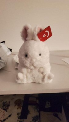 - This adorable bunny plush was designed to perfectly balance on its behind