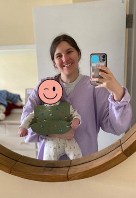[This review was collected as part of a promotion.] I love that the owner of this brand is a mother of two baby boys. The silicon around the neck is soft and adjustable for the perfect comfort. It has made cleaning after feeding so easy since it catches all the food. It’s such a beautiful sage color, I want it in all colors!