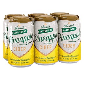 Austin Eastciders Pineapple Cider is a bright semi-sweet cider made with tropical pineapple and heirloom bittersweet apples.