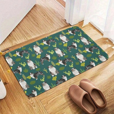 Australian Shepherd Dogs Florals Bathroom Rugs Winter Bath Mat Absorbent Non Slip Bathroom Mat Christmas Soft Floor Carpet 16x20 Inches