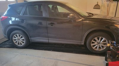 [This review was collected as part of a promotion.] I put the compact version of this product under in my Mazda CX-5 and it works perfectly. I thought it might be too small but it is an excellent fit. It appears to cover my garage floor nicely and comes with a squeegee that I will certainly use after snow storms. There is a bit of a plastic smell when you first take it out of the box but that dissipates after a few days. The corners do come up a little bit but this is easily remedied with stay put corners that they include in the box.