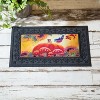 Say hello to fall with this sassafras switch mat. It features a darling bird sitting on a pumpkin surround by mushrooms and sunflowers. Light shines on this adorable to highlight the scene's beauty.