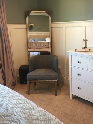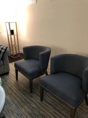 I ordered the gray chair with nailhead trim. It’s gorgeous and it is not an overly large chair, so it is perfect for the corner of my bedroom where I wanted it to go. It was easy to put together. I honestly bought it for aesthetic purposes only, but once I sat in it I was pleasantly surprised at how comfortable the seat is. It has great cushioning. The back is stiff but I like that. The sides are high enough that I can rest my arms on them if I’m reading a book or resting my head in my hand. I waited for the chair to go on sale, which was a plus! The shipping was phenomenally fast, and that was the cherry on top of my sundae! I ordered the chair on a Monday morning and received it Wednesday afternoon. Obviously I lucked out that the chair was in a local warehouse but I am still floored that I received it as fast as I did. I am in love with this chair and so happy I ordered it through Target.