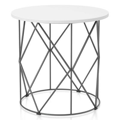 Transitional in design, this black and tempered marble glass end table is perfect for an urban home. The unexpected style combines a classic white marble-like tabletop with an urban metal lower shelf. This extra storage surface features a mesh structure perfect for storing away your laptop or tablet to cool off when not in use.
