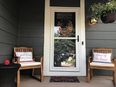 Very nice and sturdy. Easy to put together. Solid wood. Comfortable. Attractive on my front porch. My only objection is that the seat cushion is too thin. The side table is very nice, but also light weight. So not good if located where there is any strong wind.
