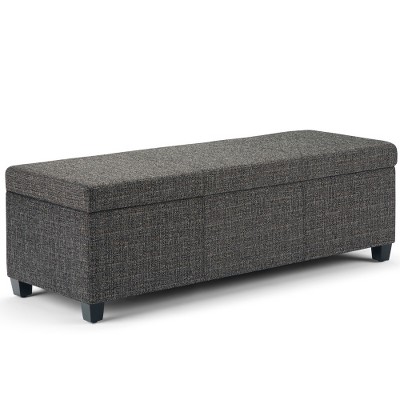 Hand constructed using solid wood, engineered wood and high density foamUpholstered with a durable Cloud Grey Linen Look FabricFeatures large interior storage space with child safety hinge to prevent lid slammingMultifunctional ottoman can be used as accent furniture or to provide additional seating in a bedroom, living room, or family room, or in a hallway as an entryway benchContemporary design includes stitching detailSimple assembly; just attach legsDimensions: 48inW x 18.1inD x 16.1inHEfforts are made to reproduce accurate colors, variations in color may occur due to computer monitor and photography