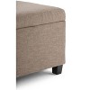 Hand constructed using solid wood, engineered wood and high density foamUpholstered with a durable Fawn Brown Linen Look FabricFeatures large interior storage space with child safety hinge to prevent lid slammingMultifunctional ottoman can be used as accent furniture or to provide additional seating in a bedroom, living room, or family room, or in a hallway as an entryway benchContemporary design includes stitching detailSimple assembly; just attach legsDimensions: 48inW x 18.1inD x 16.1inHEfforts are made to reproduce accurate colors, variations in color may occur due to computer monitor and photography