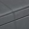 Hand constructed using solid wood, engineered wood and high density foamUpholstered with a durable Stone Grey Vegan Faux LeatherFeatures large interior storage space with child safety hinge to prevent lid slammingMultifunctional ottoman can be used as accent furniture or to provide additional seating in a bedroom, living room, or family room, or in a hallway as an entryway benchContemporary design includes stitching detailSimple assembly; just attach legsDimensions: 48inW x 18.1inD x 16.1inHEfforts are made to reproduce accurate colors, variations in color may occur due to computer monitor and photography