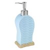 The Avanti Beach Mode Collection Lotion, Soap and Sanitizer Dispenser is a 3-dimensional light blue flip-flop with dark blue dots standing on a sand base. Coral is growing out of the base and an ivory fan shell accessorize the piece. Made of durable, hand-painted resin for easy care and long life. Measures W 3" x L 3.5" x H 8.25". Coordinating towels, rug, shower curtain, and bath accessories also available.