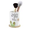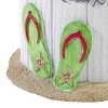 The Avanti Beach Mode Collection Tumbler says "just go to the beach and relax" on a white shiplap ground. A pair of green flip-flops, a starfish and a base made of realistically-looking sand finish the look. Made of durable, hand-painted resin. Measures W 3.5" x L 3.5" x H 4.25". Coordinating towels, rug, shower curtain, and bath accessories also available.