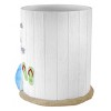 The Avanti Beach Mode Collection Wastebasket says "All you need is beach & Flip Flops" and features an off- white shiplap ground and a sand base. Made of durable, hand-painted resin for easy care and long life. Green flip-flops, yellow and blue sunbrellas and coral decorate the piece. Coordinating pieces available. Measures W 8.75" x L 9.25" x H 10". Coordinating towels, rug, shower curtain, and bath accessories also available.
