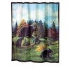 The Avanti Black Bear Lodge 13-Piece Shower Curtain & Hook Set features a curtain with a fall scene with a mother bear and her cubs moving through a wooded area with trees, a cabin and the sky. The curtain measures 72" x 72" and is beautifully printed on 100% polyester for outstanding color reproduction and easy care. Set includes 1 curtain and 12 black bear hooks made of resin with stainless hooks. Coordinating towels and bath accessories also available. Adds the perfect touch of the outdoors to any cabin, lake house or any home!