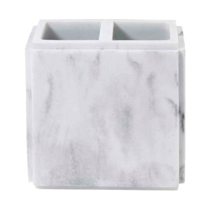 The Avanti Catania Toothbrush Holder features a grey and white marble look in a contemporary, geometric shape. With its beveled edges that give it a crisp, clean look, this piece adds a level of style and sophistication to any bathroom. Made of durable resin for long-lasting use. Measures W 2.38" x L 4.5" x H 4.5". Other matching bath accessories also available.