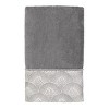 The Avanti Deco Shell Nickel 3-Piece Decorative Towel Set features a beautifully embroidered contemporary shell motif on a tonal grey fabric with rope trim. The nickel velour towel is 100% cotton . Includes one bath (27" x 50", hand (16" x 30"), fingertip (11" x 18") towel. The velour finish provides a smooth, velvety feel with a subtle sheen.