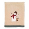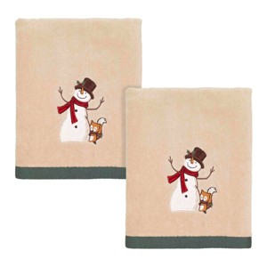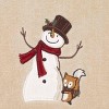 The Avanti Friends Gather 2-Pack Decorative Hand Towel Set is embroidered with a happy snowman with red scarf and top hat, accompanied by a friendly red fox. A coordinating green border adds the perfect finishing touch. The tan 16" x 28" velour towels are made of 100% cotton. The velour finish provides a smooth, velvety feel with a subtle sheen. Coordinating towels, rug, shower curtain, and bath accessories also available.